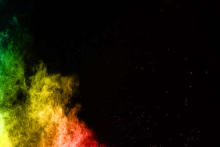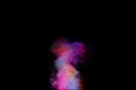 Explosion of colored powder, isolated on black background. Abstract colored background