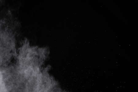 White powder explosion on black background. Colored cloud. Colorful dust explode. Paint Holi.