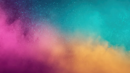 Stylish background blending turquoise, orange, and pink gradients into a glowing texture with realistic film grain and noise for poster use