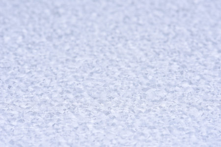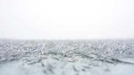 Detailed macro shot of sparkling frost crystals on a frozen surface with a soft background