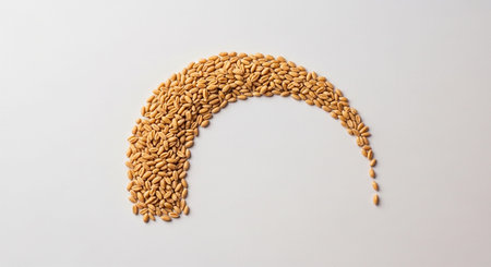Grains showing arc of golden wheat grains on a clean white background keywords: wheat, grains, cereal, food,...
