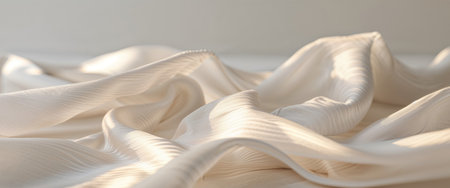 Discover the softness and elegance of smooth white fabric showcasing gentle waves and meticulous folds. Perfect for backgrounds and design projects in various aesthetics.