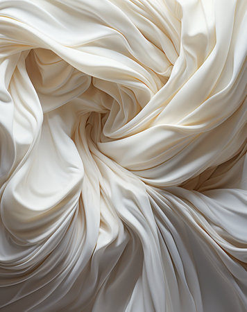 A captivating image of flowing cream fabric with gentle waves and soft textures, perfect for use in interior design, background art, or fashion projects.