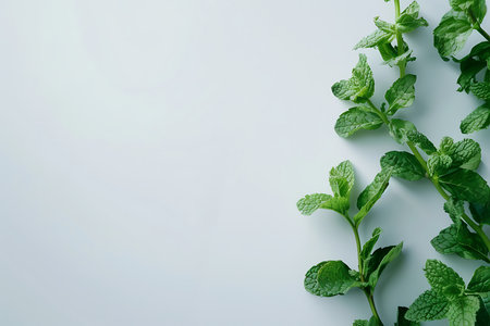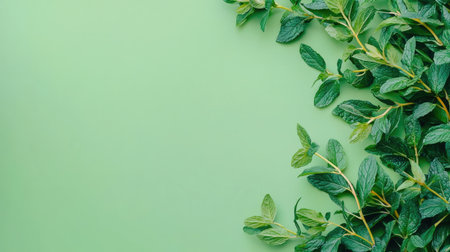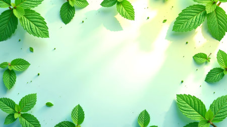 Fresh mint sprigs framing a vibrant empty space ideal for creative designs or promotions
