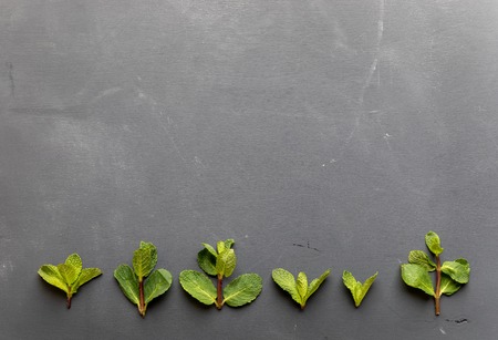 Mint. Leaves and branches of fresh green wild mint on a light concrete table. background of mint leaves. top view