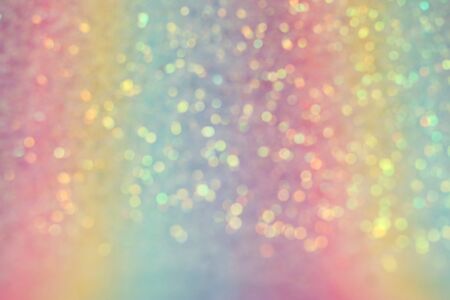 Blurry bokeh background with iridescent glitter in pastel rainbow colors creating a soft glow