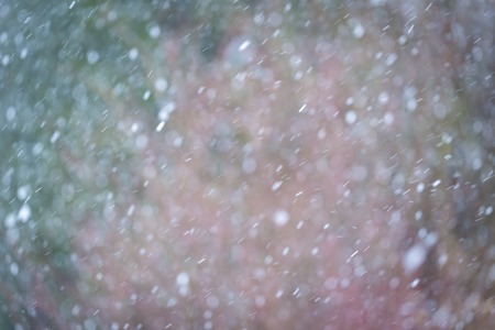 Snowstorm texture, bokeh lights on black background, shot of flying snowflakes in the air
