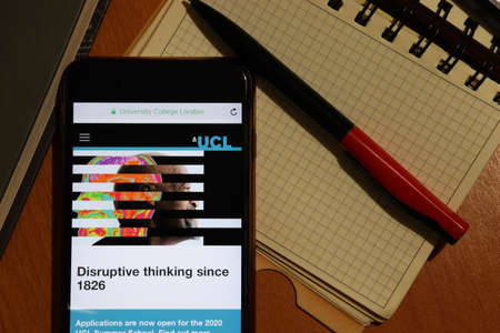 Los Angeles, California, USA - 7 December 2019: Phone screen with UCL University College London website page top view. Higher education admission concept, Illustrative Editorial.