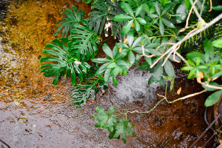 Waterfall in the garden. Waterfall in the rain forest.