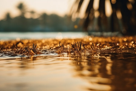 Tropical Leaf Shadow on Water Surface, Abstract Background Concept - ai