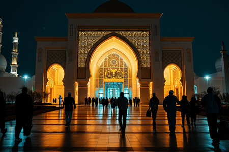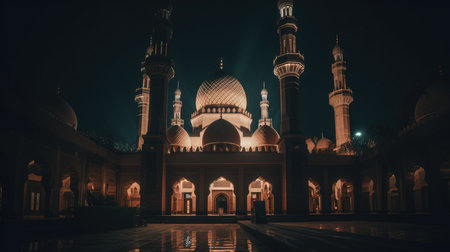 Majestic Mosque Illuminates Nighttime Prayer Sessions