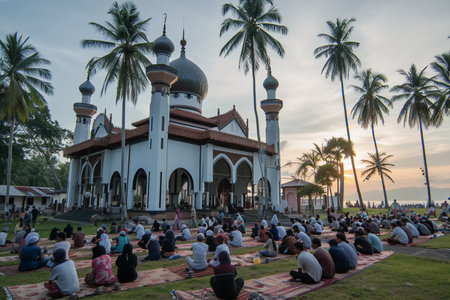 Ramadan is a holy month observed by Muslims around the world, Muslims fast from dawn to sunset, the end of Ramadan is celebrated, Eid al-Adha,Allah,AI Generate.