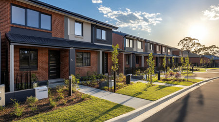 Modern suburban duplex townhouse in sunny neighborhood, ideal investment. generated by ai