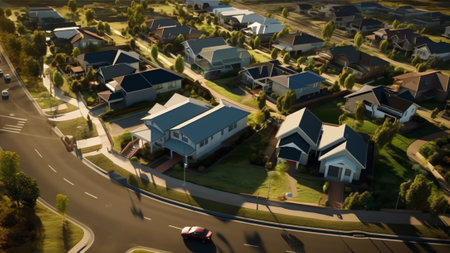 Capturing the Blissful Symmetry: A High Angle Glimpse into Suburban Serenity