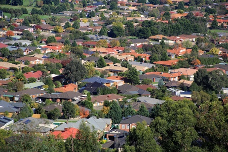 Aerial view of residential neighborhood in suburbs of Toronto, Canada.