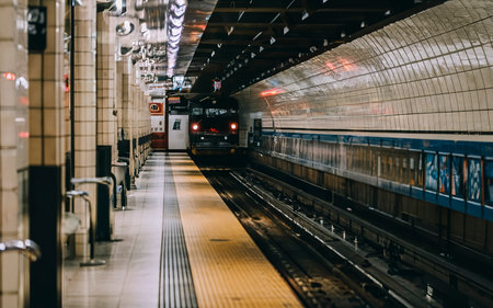 Montreal, Canada - August 12, 2025: Place-d'Armes metro station platform, STM Orange Line