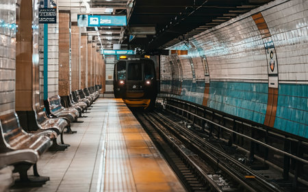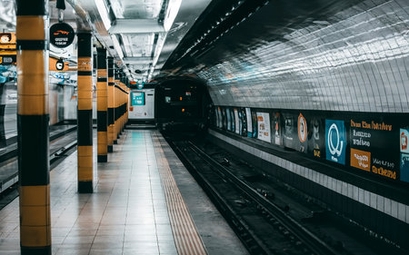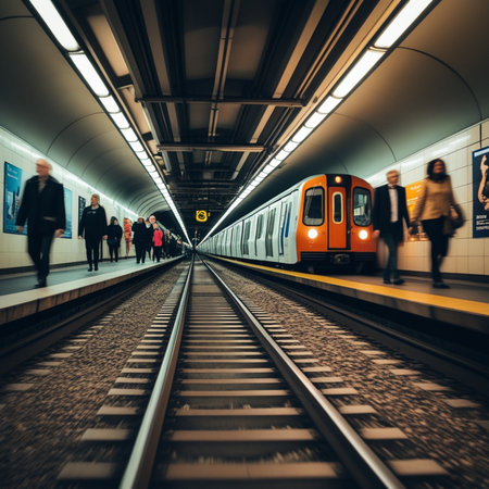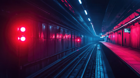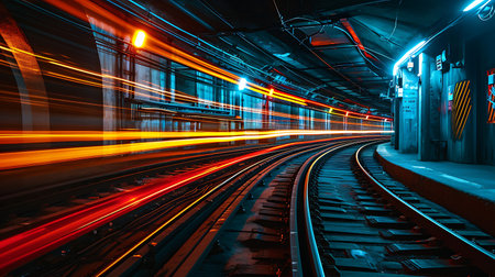 A stunning image capturing the essence of an illuminated subway tunnel, showcasing tracks leading to unknown destinations in a modern urban landscape.
