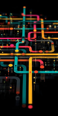 Dynamic and Colorful Network Abstract Featuring Interconnected Lines and Futuristic Design Elements