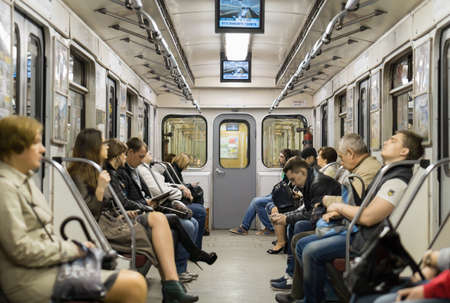 In the carriage of the Moscow metro during the movement of the train