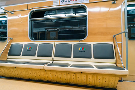 Moscow - 04 august 2018: Interior of the empty carriage in moscow subway.