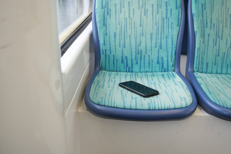 Lost phone on empty subway seat. lost smart phone concept