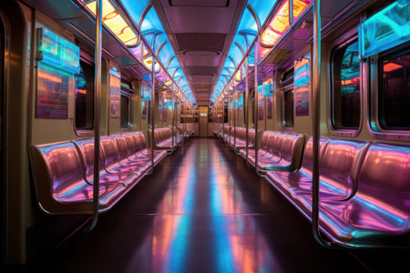 Vibrant Purple and Blue Subway Car With Neon Lights