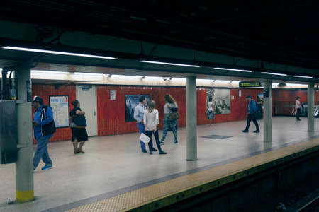 new york city, 11 september 2015: people wait on platform of subway station bowling green in lower manhattan new york city