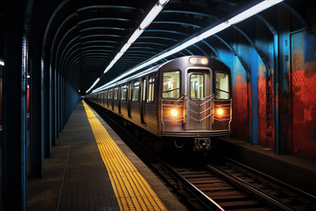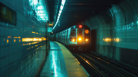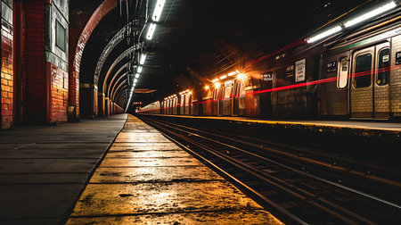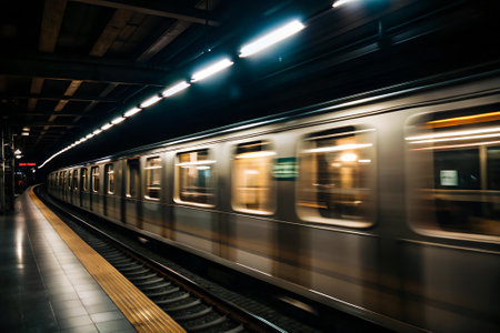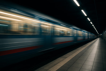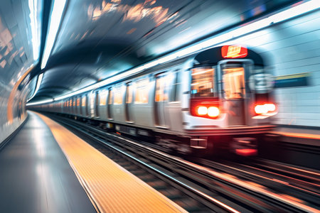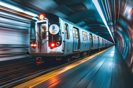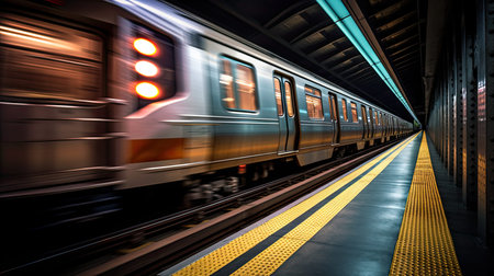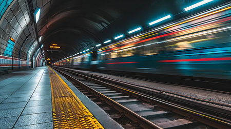 Dynamic urban metro energy speeding subway train in tunnel with motion blur captures vibrant motion