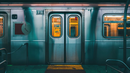 A commuter train pulling into a station platform, its doors open to welcome passengers eager to embark on their journeys through the cityscape.