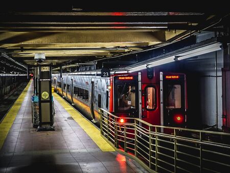 New York City, NY USA: December 1, 2018 - A Train waiting at Platform 23 in the Subway of Grand Central Station