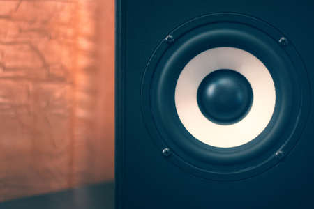 Closeup of black premium loudspeaker for music and home theater system with color mood and tone style