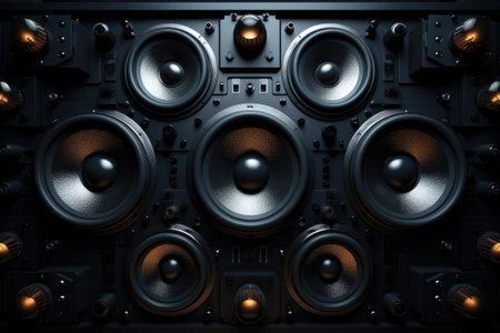 Powerful Sound Loudspeaker on a Black Wall Background. Generative AI