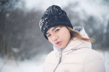 Young Asian woman winter portrait. Shallow DOF