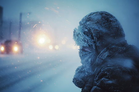 Winter Freeze: Man Struggling with Extreme Cold