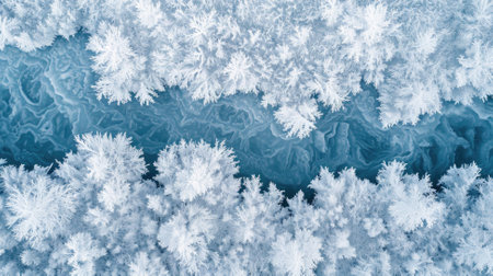 Frosty winter background with snowflakes. Aerial view.