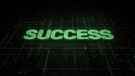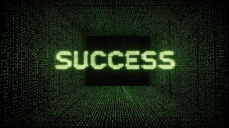 This striking image features the word 'Success' displayed in vibrant green over a dynamic matrix-like background, symbolizing achievement in the digital age.