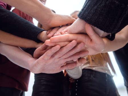 close up. group of young business people putting their palms together.
