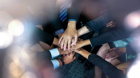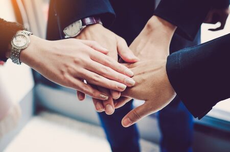 Image of business, Concept of Teamwork people joining hands.