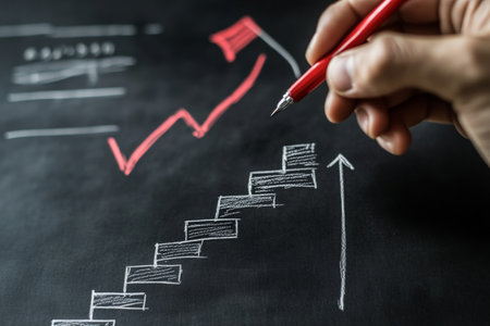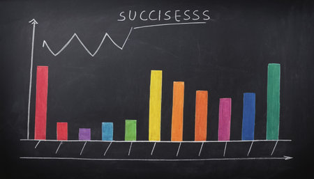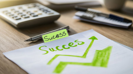 A vibrant workspace featuring a hand-drawn success chart, calculator, and notes, symbolizing growth and achievement in a business or professional context.