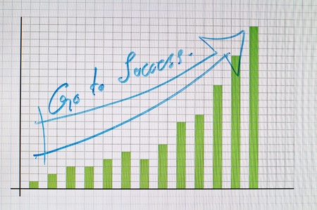 A close-up view of a success graph symbol on paper accompanied by a calculator. This image represents business growth and financial planning concepts clearly.
