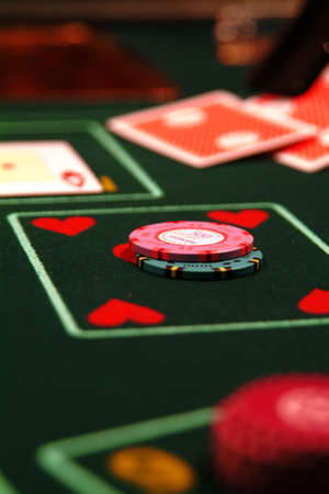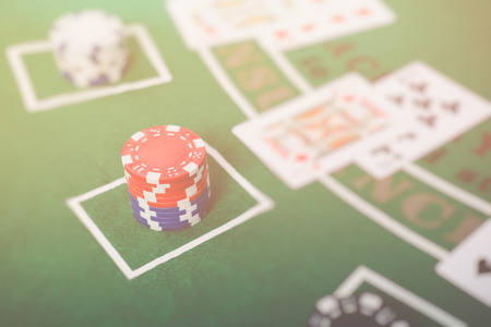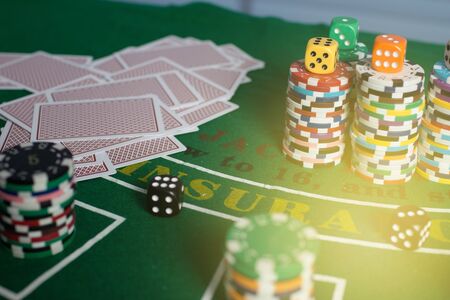 Chip cards are on the green blackjack table. Casino concept, gambling