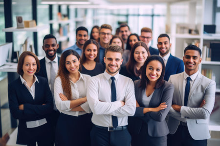 Portrait group of Happy multiracial coworkers standing together at modern office, Teamwork concept. Generative Ai