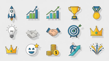 Category: showing business success and achievement icons with trophy, rocket, and crown keywords: success, achievement, business, award, trophy,...
