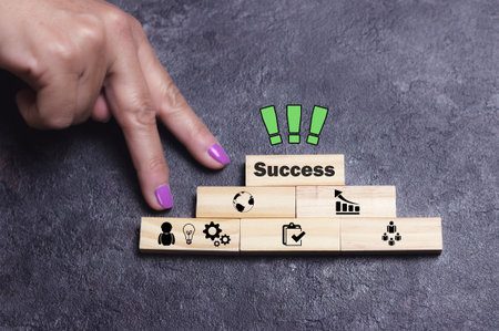 Concept of success on wooden cubes