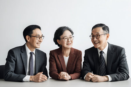 Portrait of Asian senior business people sitting at table and looking at camera.