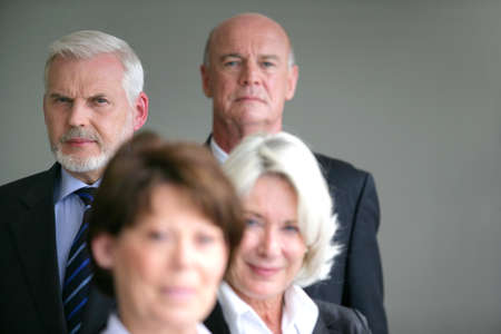 Portrait of a group of smiling senior businesspeople standing together in office