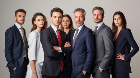Portrait of a confident business team standing in front of a gray background