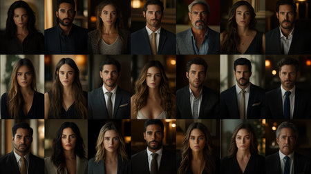 Collage of portraits of an ethnically diverse and mixed age group of focused business professionals