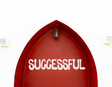 Successful symbol. Concept word Successful on beautiful red wall. Beautiful red and white wall background. Business successful concept. Copy space.