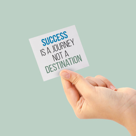 A person running up a hill toward a large sign that reads 'Success,' symbolizing goal achievement